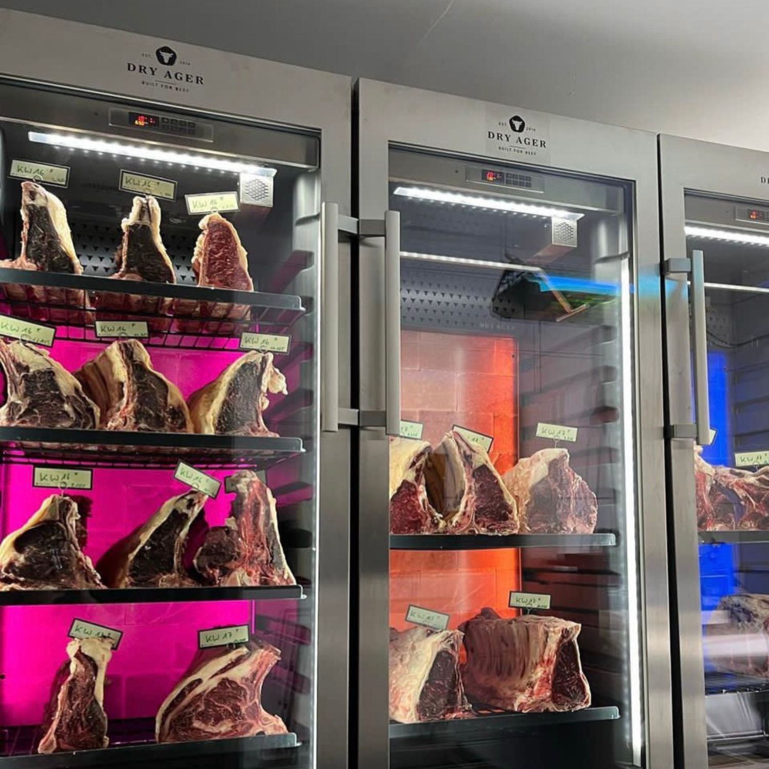 Wir reifen unser Dry Aged Beef in den bekannten Dry Agern. Wir reifen ausschließlich Färsen Rücken. Diese werden mindestens 21-28Tage im Dry Ager gereift und anschließend ausgebeint vom Metzgermeister und Fleischsommelier. Daraufhin für unsere Kunden zum Verkauf Angeboten.