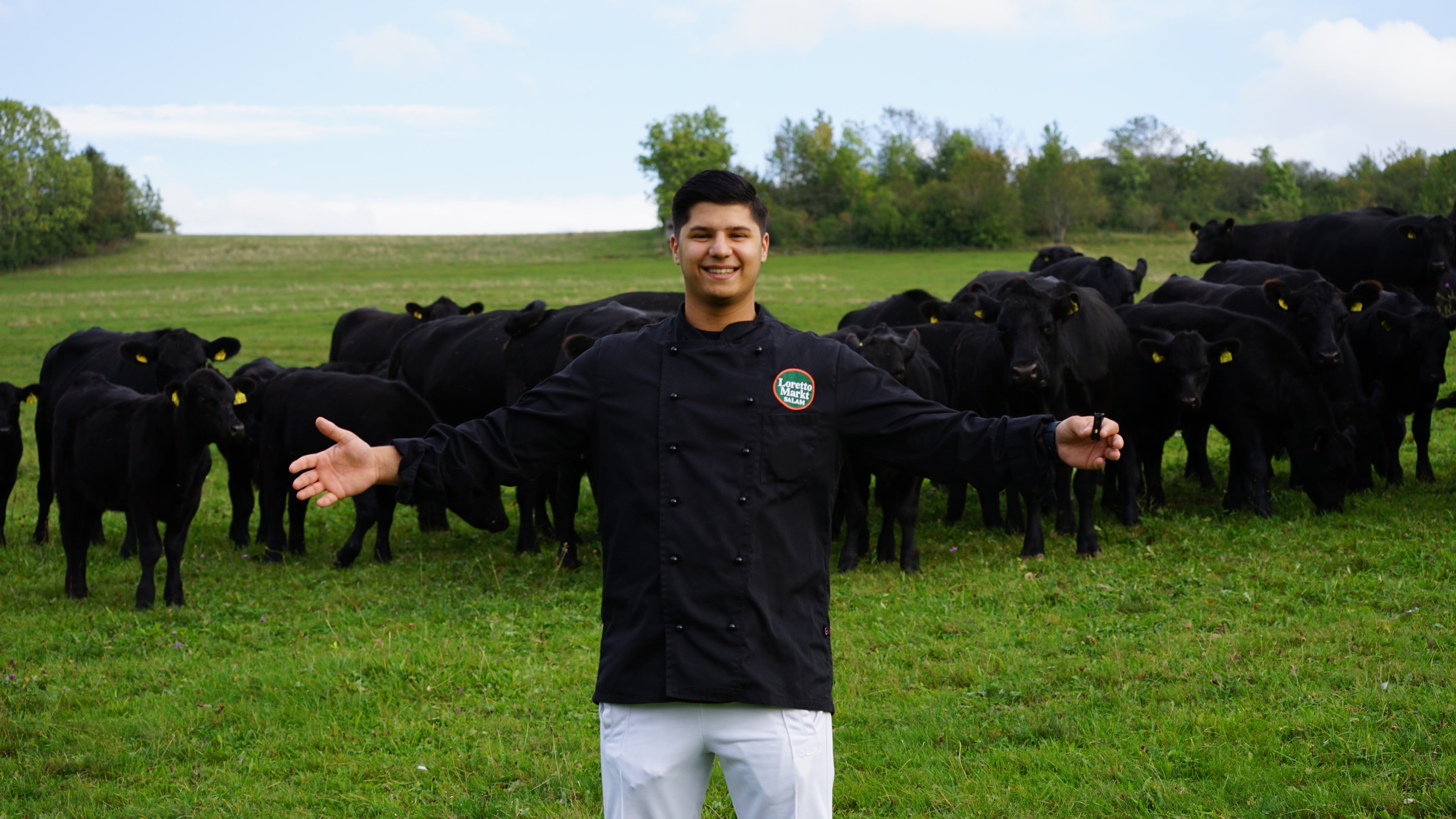 Wir arbeiten nun fast zwei Jahre mit unserem Landwirt Benjamin zusammen, der unsere Wagyu-Ochsen und Färsen betreut. Die Weide, auf der die Rinder leben, liegt nur 15 km von unserer Metzgerei entfernt. Die Wagyu-Ochsen und Färsen führen ein ruhiges Leben, da sie aufgrund ihrer Kastration weniger aktiv sind. Das führt zu einem erhöhten Fettaufbau, was eine außerordentliche Marmorierung begünstigt, worauf wir sehr viel Wert legen.